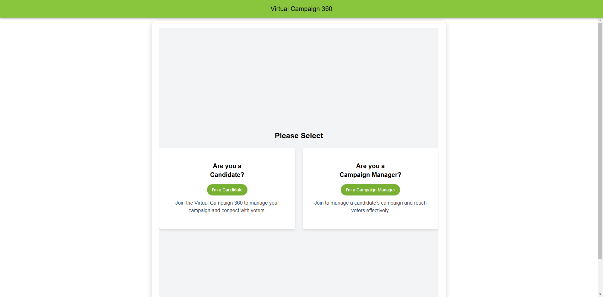 Choose your account type: either Candidate or Campaign Manager, depending on your role.