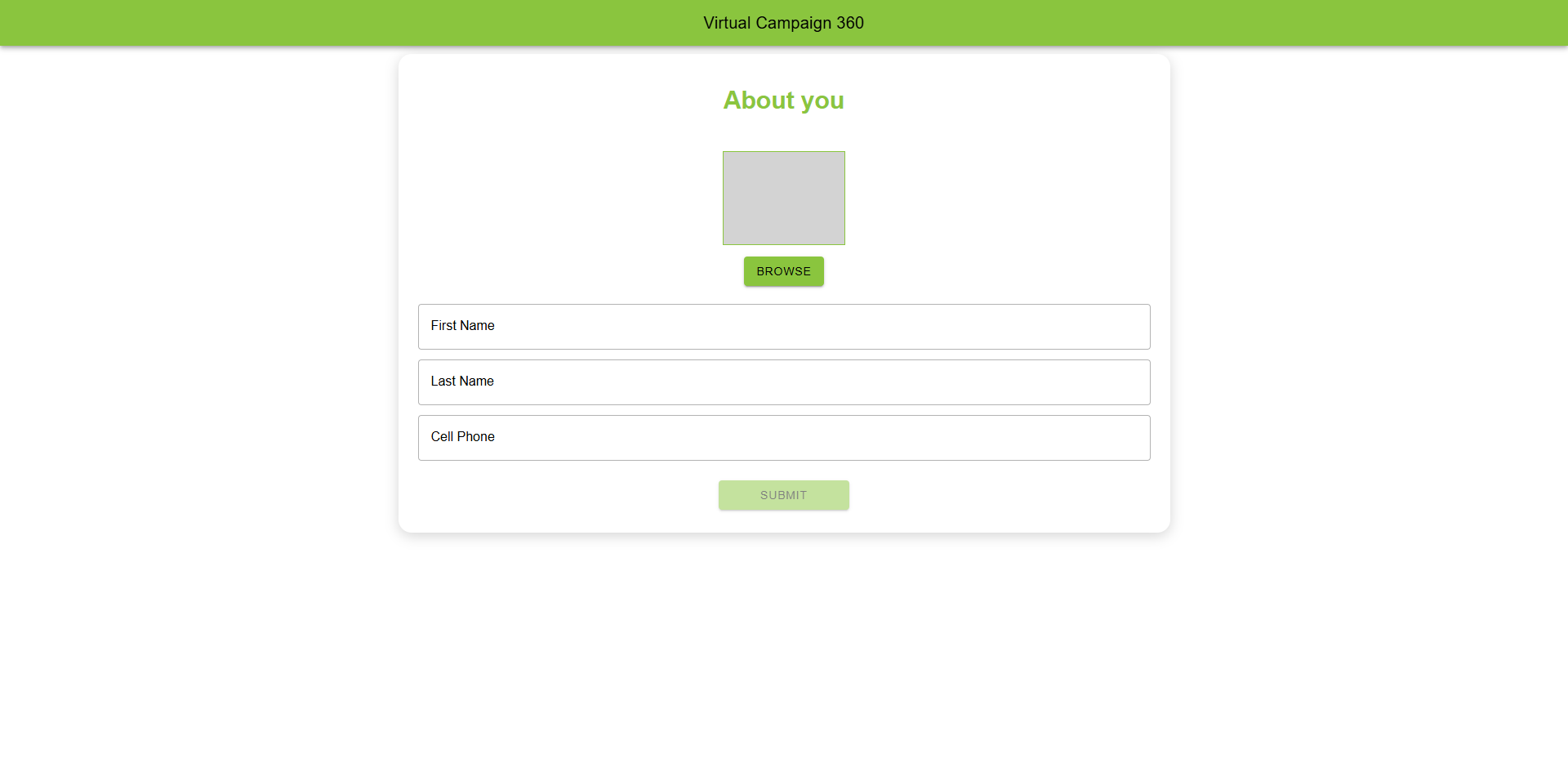 Fill in your personal details, including your first name, last name, cell number, and optionally upload a profile image. Once completed, click Submit.